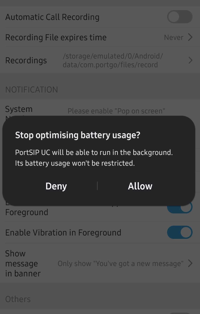 Then lastly, click on battery usage, and when a pop-up appears, click on allow. This will keep the app running in the background even when your phone is locked to ensure that you will still receive calls even when you are not actively using the app.