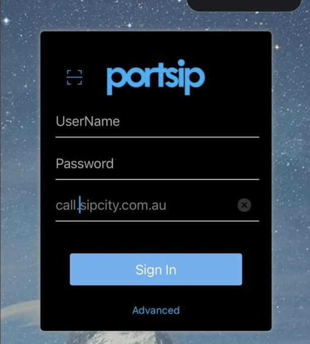 Next, you will be directed to the login page. Use your number as the username, enter the password you set for that number in step 1, and set the host/domain as call.sipcity.com.au. See the sample below: